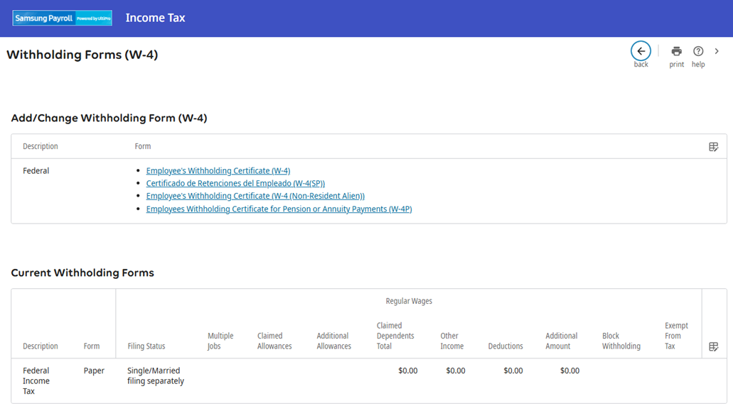 7. Your W-4 is now updated. You can view it in the “Current Withholding Forms” section. Please note it can take 1-2 pay periods to see these changes reflected.