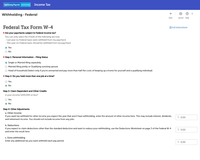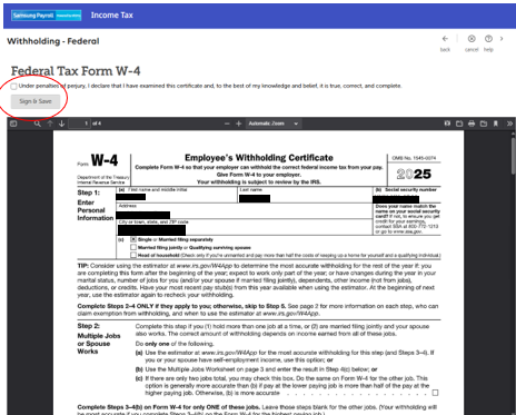 6. Select next. Review the information filled out on your W-4. Select the box, then sign and save.